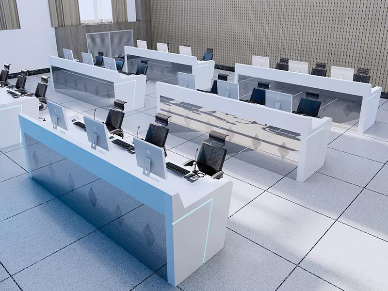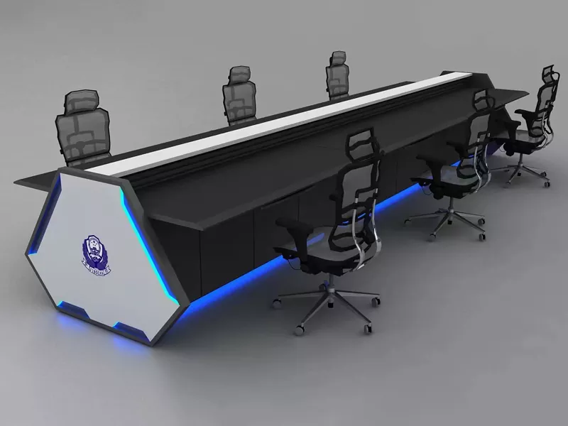 Konsolsystemet er specialbygget til 110 kommandohaller, overvågningscentre for offentlig sikkerhed og nødkommandorum og understøtter multiskærmsovervågning med høj tæthed, kommunikationsterminaler og databehandlingsudstyr i et sikkert og velordnet layout.